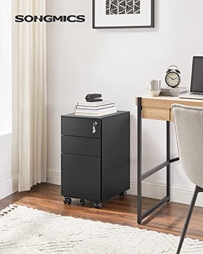 Vad du får: Ett Songmics Desk -skåp med 3 lådor, 1 lådörar och 1 hängande filstång och 5 hjul (2 har bromsar att stanna på plats, 1 centrum för extra stabilitet). Ta med beställn till ditt kontor