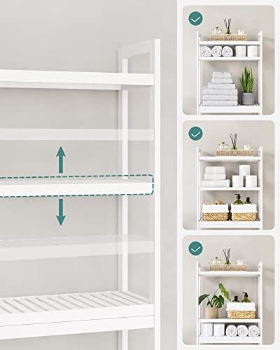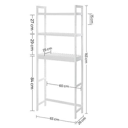 Specifications:- Colour: White- Material: Bamboo- Product Size: 63 x 26 x 163 cm (L x W x H)- Product Weight: 5.5 kg- Max. Static Load Capacity per Shelf: 15 kg Package Contents:- 1 x Bathroom Organiser- 1 x Accessory Kit- 1 x Instructions