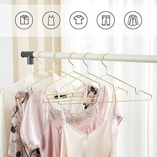 Enkla och snygga galgar: kombinera enkelhet, minimalism och funktionalitet i ett; Med den glänsande gyllene finishen tillför denna hängare en touch av ljusstyrka till din garderob och uppdaterar ditt utrymme för en ljusare tilltalande