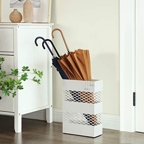 REGN? Nej, snälla: Du gillar att lyssna på ljudet av regn utanför, men vem vill ha ett vattendränkt golv? Tack vare detta paraplyställ med vattenbricka slutar regnet här så fort du går in i huset