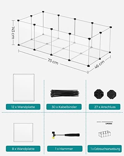 Specifikationer:- Färg: Vitmaterial: PP-plastpanel, ABS-plastanslutning- Produktstorlek: 143 x 73 x 46 cm (L x w x h)- Vikt: 4,15 kg Package Innehåll:- 12 x Plastblad (45 x 35 cm)- 8 x plastblad (35 x 35 cm)- 27 x plastanslutning- 30 x kabelband- 1 x Mallet- 1 x instruktioner (EN, de, fr, es, it)