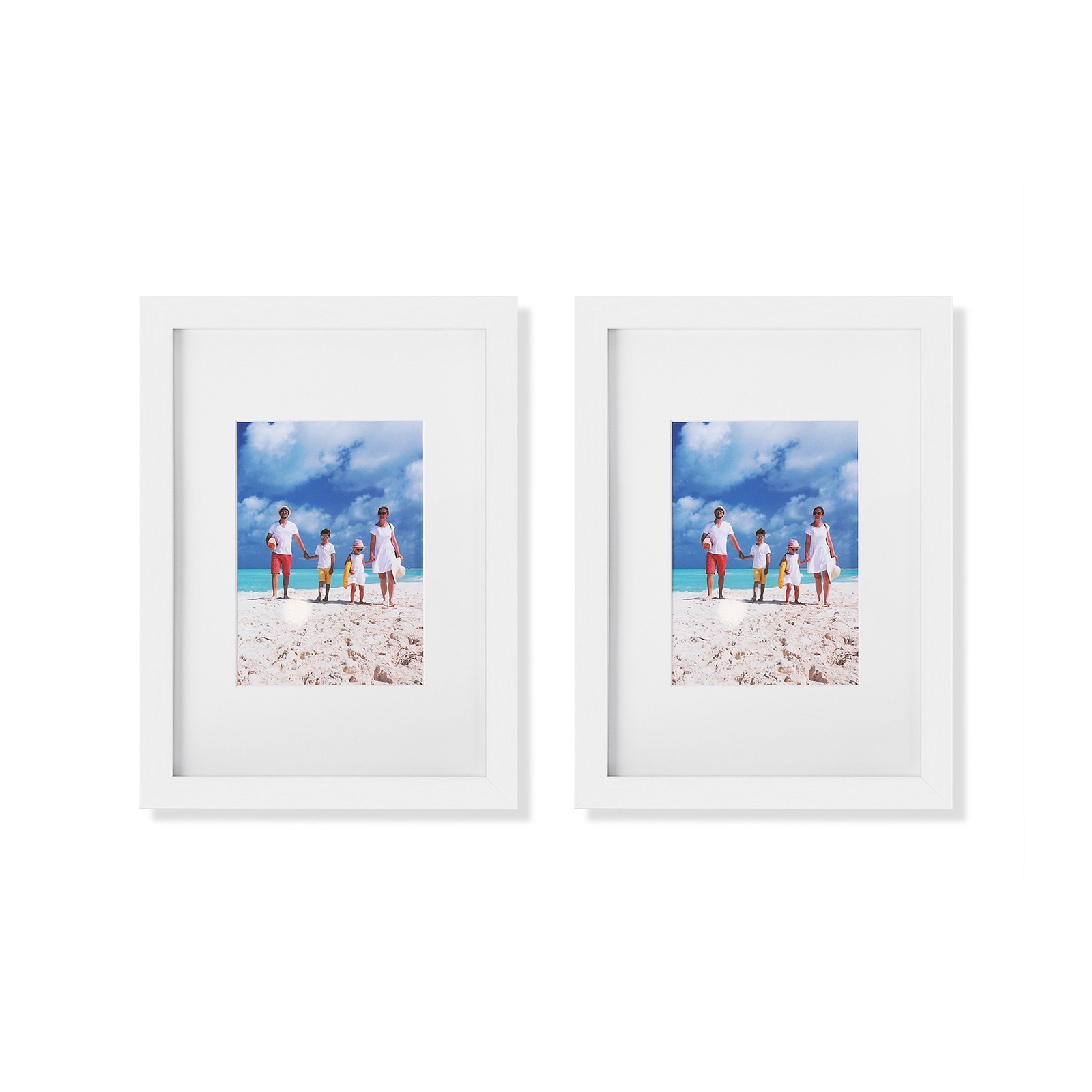 Specifications:- Colour: White- Material: MDF (Medium Density Fiberboard), Glass- Size of Photo: 21 x 29.7 cm (without mat), 13 x 18 cm (with mat)- Edge Width: 2 cm- Edge Thickness: 1.8 cm- Weight: 1.5 kgPackage Contents:- 2 x Photo Frame
