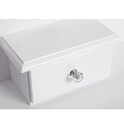 Specifikationer:- Material: E1-grade MDF, träfibrer: 75 x 40 x 139 cm (bxdxh)- Bordsskivans storlek: 75 x 40 cm- Spegelstorlek: 38 x 54 cm (bxh)- Pallstorlek: 37 x 28 x 45 cm (bxdxh )- innermått på en enda liten låda: 12,5 x 5,5 x 5,5 cm (lxbxh)- innerstorlek på en enda stor låda: 25 x 20 x 7 CM (LXBXH) Fraktinnehåll:- 1 X Sminkbord – 1 X pall- 1 X Instruktion (da, FR, IT, ES, DE)