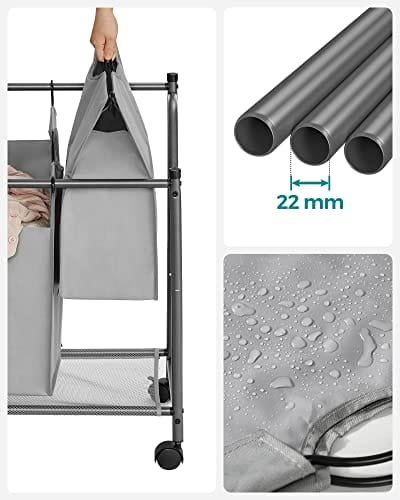 Songmics Rolling Tvättsorterare, tvättkorg med 4 avtagbara väskor, tvätthamare, grå