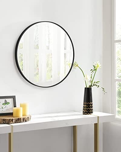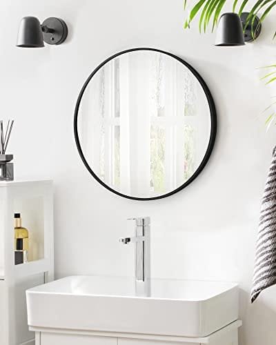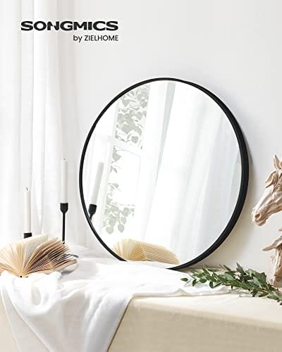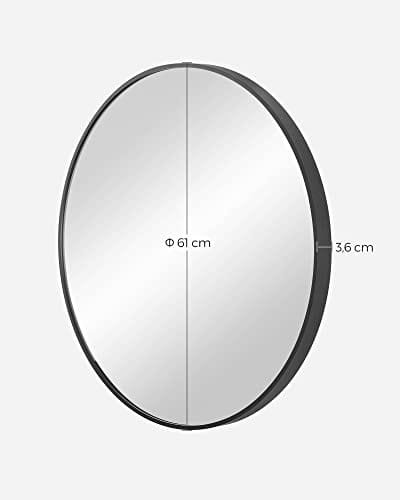 Songmics Rund väggspegel badrumsspegel 61 cm diameter metallram, svart