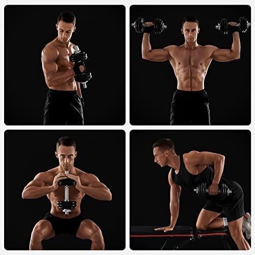 [Anti-slip grepp] Robusta 14 cm långa greppstänger med halkfri räffling på ytan säkerställer ett säkert och bekvämt grepp; 4 Spinlock-kragar förhindrar att hantelplattorna skramlar