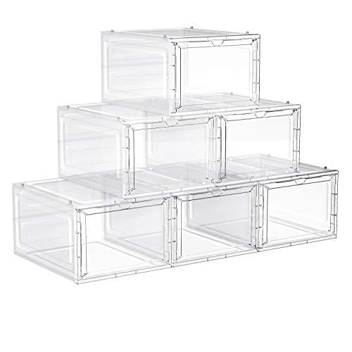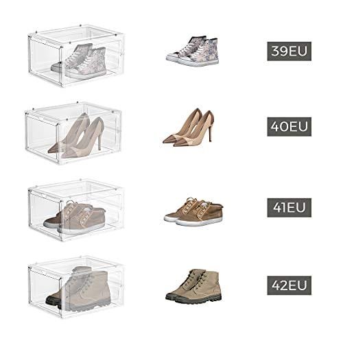 Inga fler spridda skor: distraherade av de out-of-place-skorna spridda om ditt hem? Varje låda i denna uppsättning av 6 skopruta (25,5 x 33 x 17,5 cm, inre storlek) är tillräckligt bred för att sätta ett par skor upp till Storbritanniens storlek 10 och hålla dem organiserade