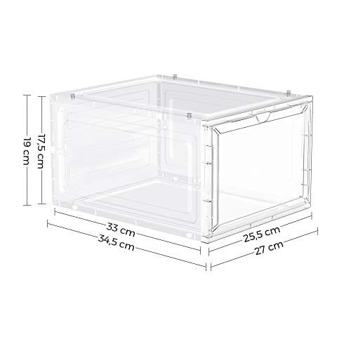 Songmics Shoe Boxes, Plastic Shoe Storage Arrangörer med tydliga dörrar, Vit