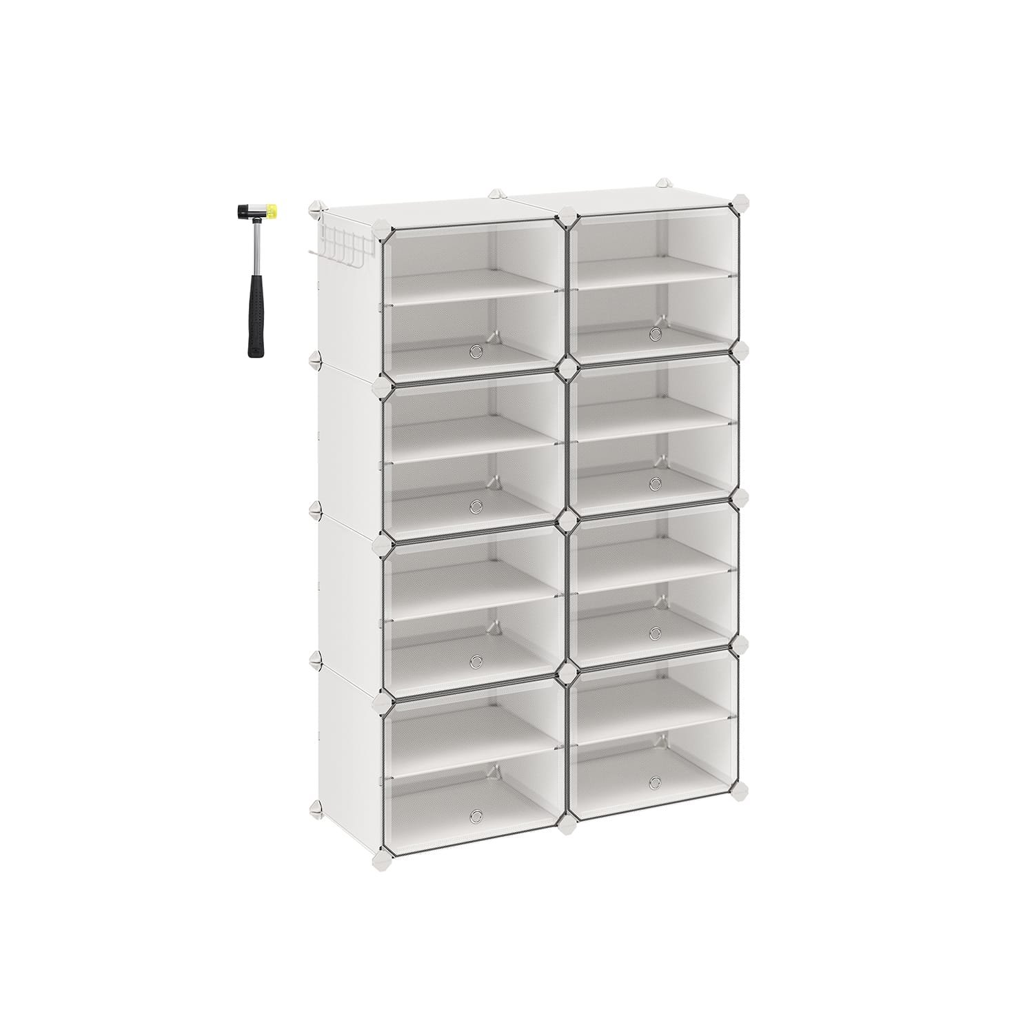 Skoställ, 8-kubers skoställ med dörrar, 32 par skoförvaringsskåp i plast, stålram, vit