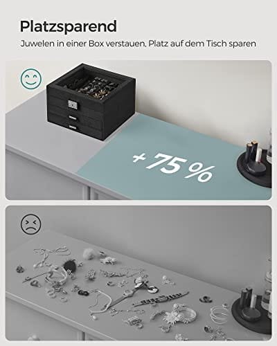 Pärlor i skalet: inramade i konstruerat trä och insvept i mjuk sammet för både det yttre och inre fodret, dina skatter kommer att vara helt skyddade i denna smyckeskrin – inget damm, inga repor, inga fläckar – så de kommer alltid att glänsa som nya på dig