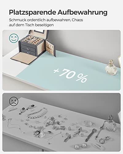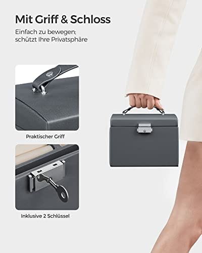 Songmics smyckeskrin, låsbar smyckeskåp med 2 lådor, grå