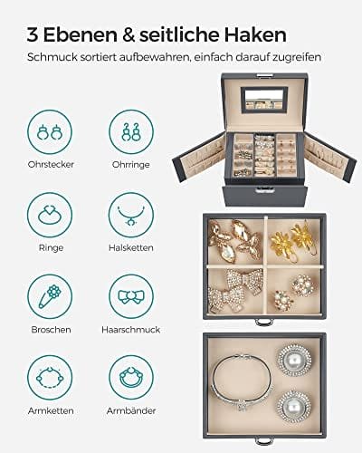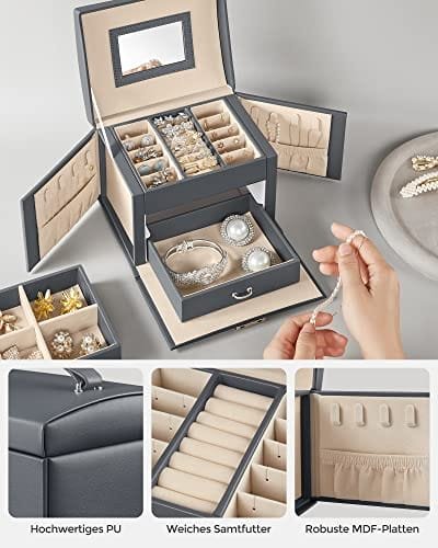 Ge aldrig upp skönhet: Res och se snygg ut, är det möjligt? Ja det funkar! Packa bara denna kompakta 17,5 x 13,5 x 12 cm smyckeskrin i din resväska så kommer du ångra dig när du är på språng