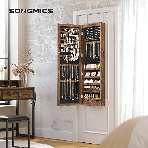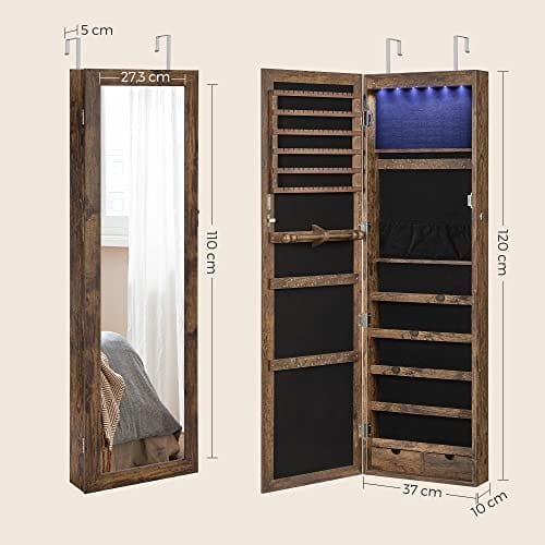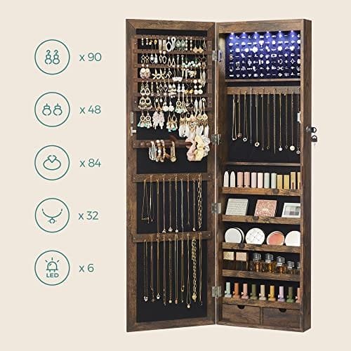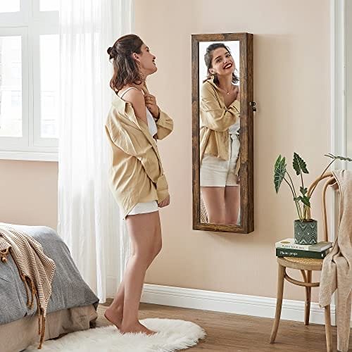 Beställ med stil: Släpp dagarna av försvunna och trassliga smycken och uppgradera din dagliga skönhetsrutin till nästa nivå med detta chica smyckesskåp med glasspegel, rena linjer och en rustik brun finish