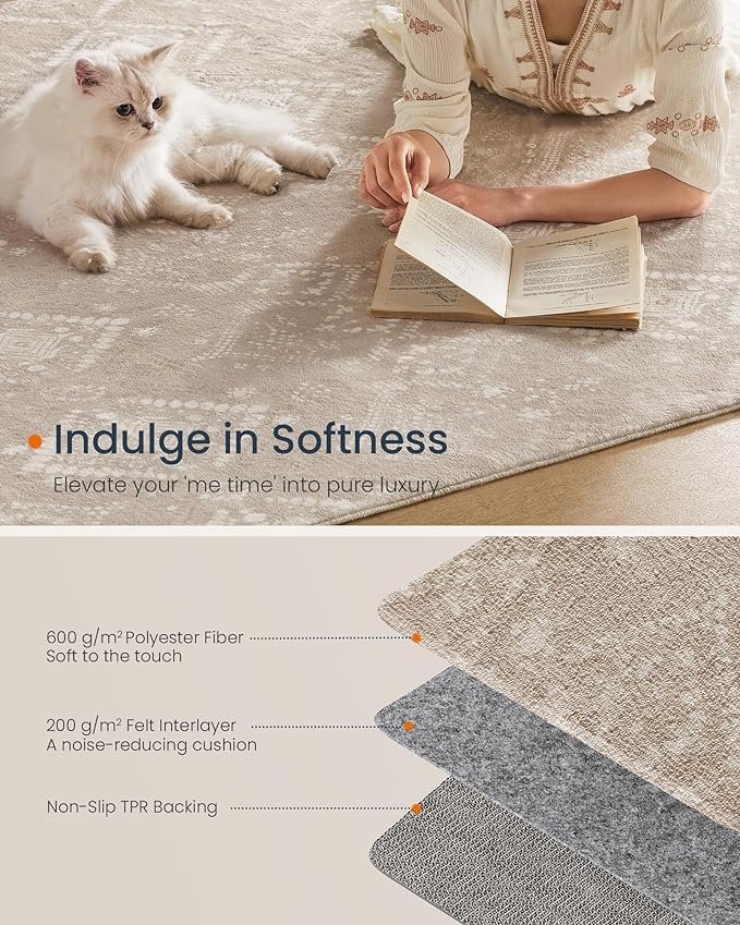 【NON-SLIP AND VERSATILE】The area rug’s backing utilizes TPR for superior anti-slip performance, making it a perfect fit for various floor types, including hardwood, tiles, and more