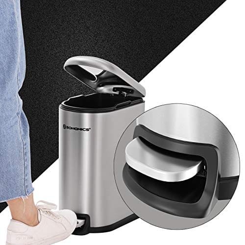 Songmics tunn soptunna, 10L pedalbehållare, stål, Silver