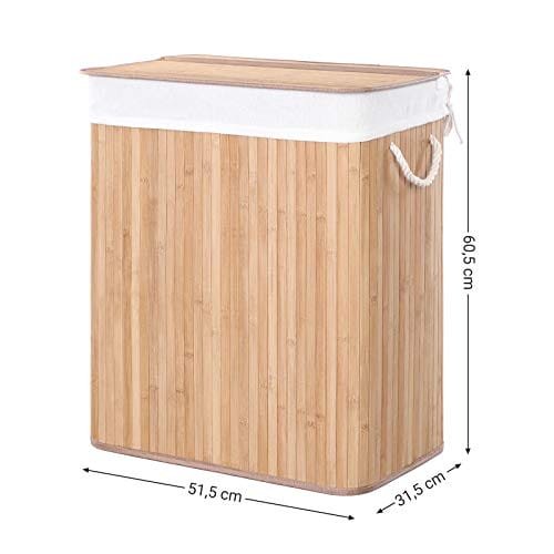Ett måste-tillskott: storleken 51,5 x 31,5 x 60,5 cm (L x B x H), den här tvättkorgen med lock av bamburibbor erbjuder 100L för att dölja dina smutsiga kläder och hålla ditt hem i perfekt ordning