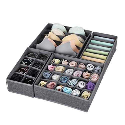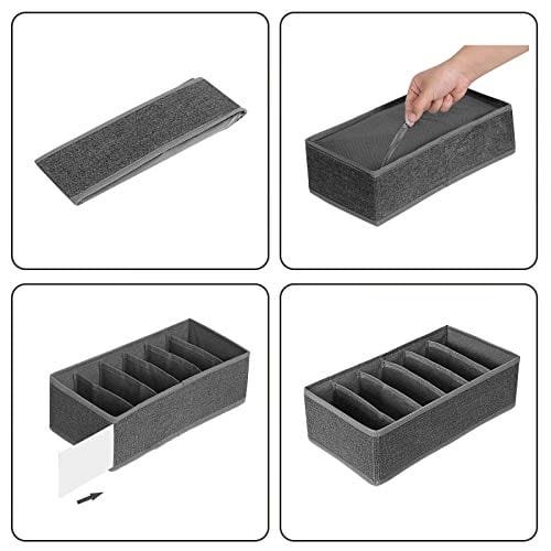 Mångsidiga applikationer: Dessa 4 tyglådor uppfyller olika behov: 5-facks vikboxen (32 x 32 x 10 cm) för behåar, 6-fackslådan (32 x 16 x 10 cm) för halsdukar eller underkläder, 8-fack låda (32 x 16 x 10 cm) för band och lådan med 24 fack (32 x 32 2 x 10 cm) för strumpor eller andra tillbehör.