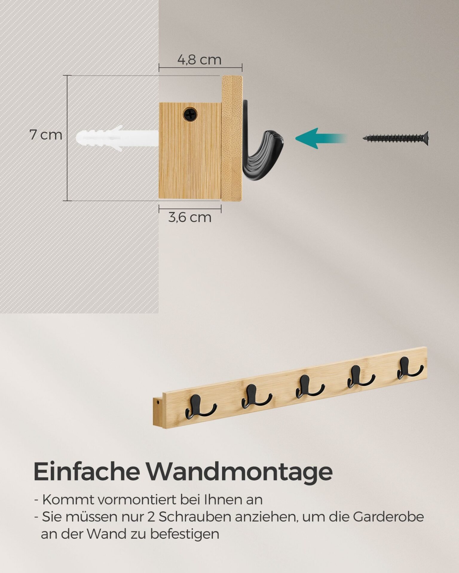 [Easy Assembly] To make assembly easier, this coat hanger is shipped pre-assembled. You’ll find easy-to-follow instructions to quickly attach the coat rack to the wall using just 2 screws!