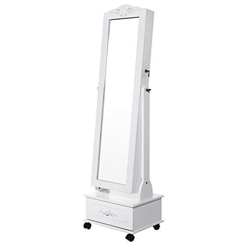 Med ett sidoslutlås och en magnetisk dörr håller detta skåp dina värdesaker säkra och välordnade. Du kan enkelt organisera halsband, örhängen, ringar, armband, och parfymer tack vare de olika facken och krokarna. Dessutom reflekterar spegeln inte bara din stil utan också ditt hem.
