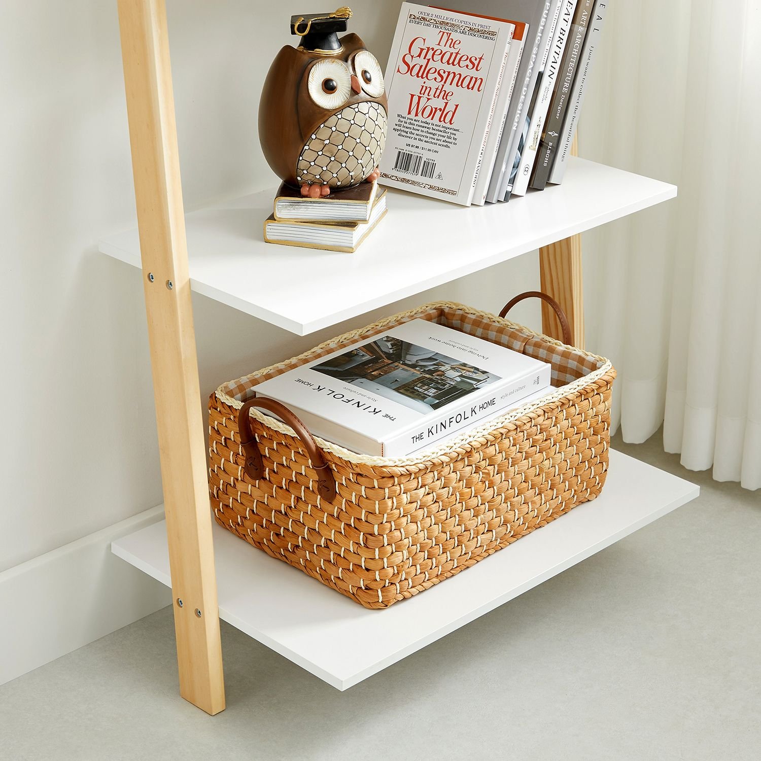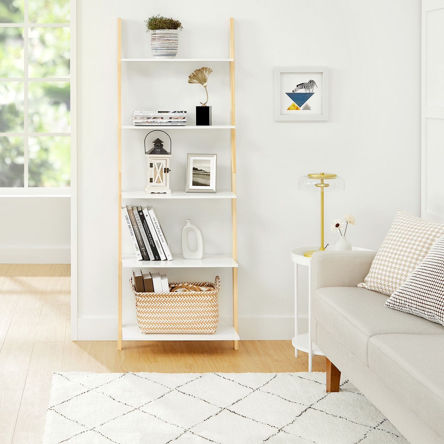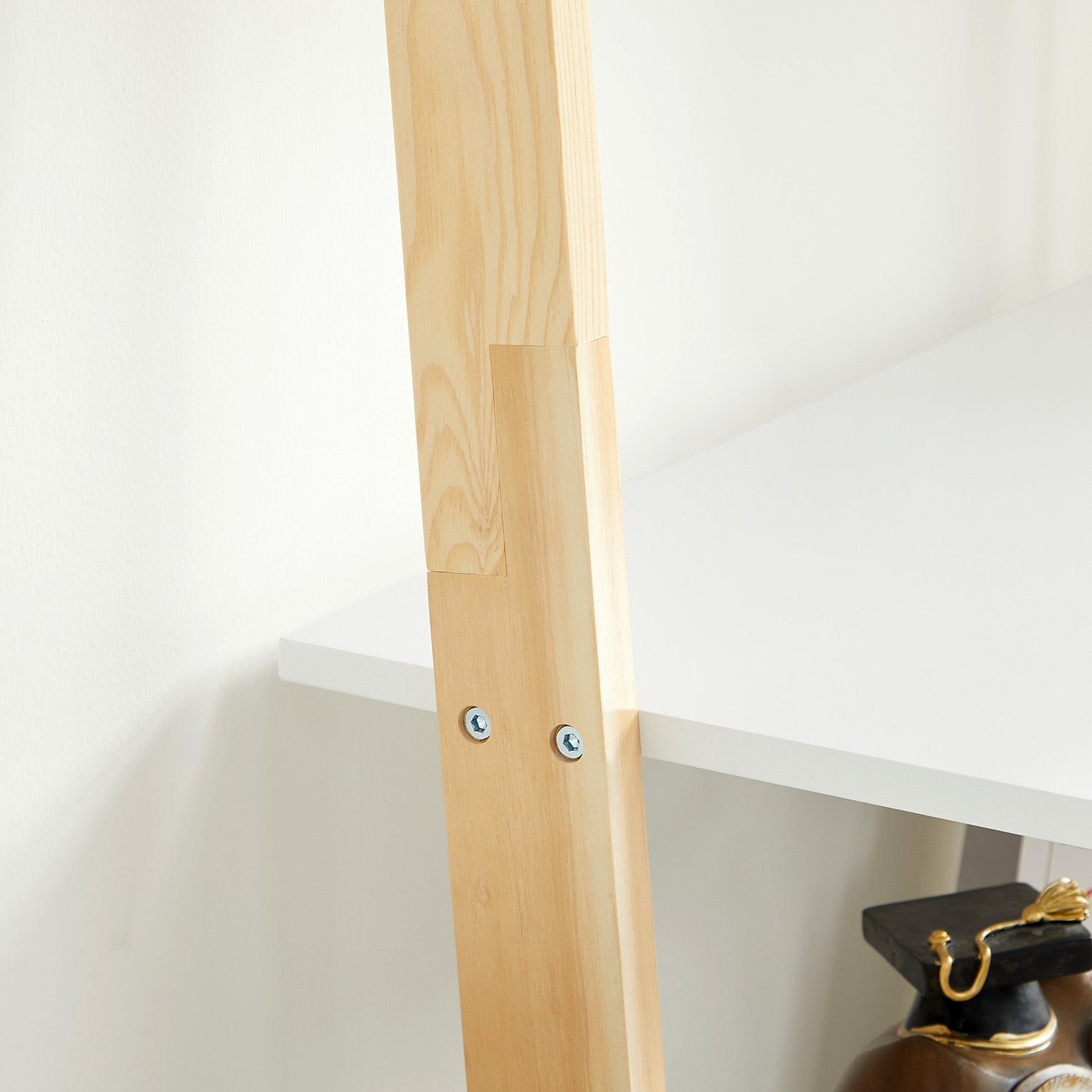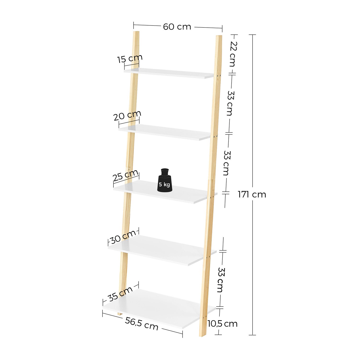 Stegehylla, 5-vånings bokhylla, vägghylla för vardagsrum, kök, vit och naturlig färg