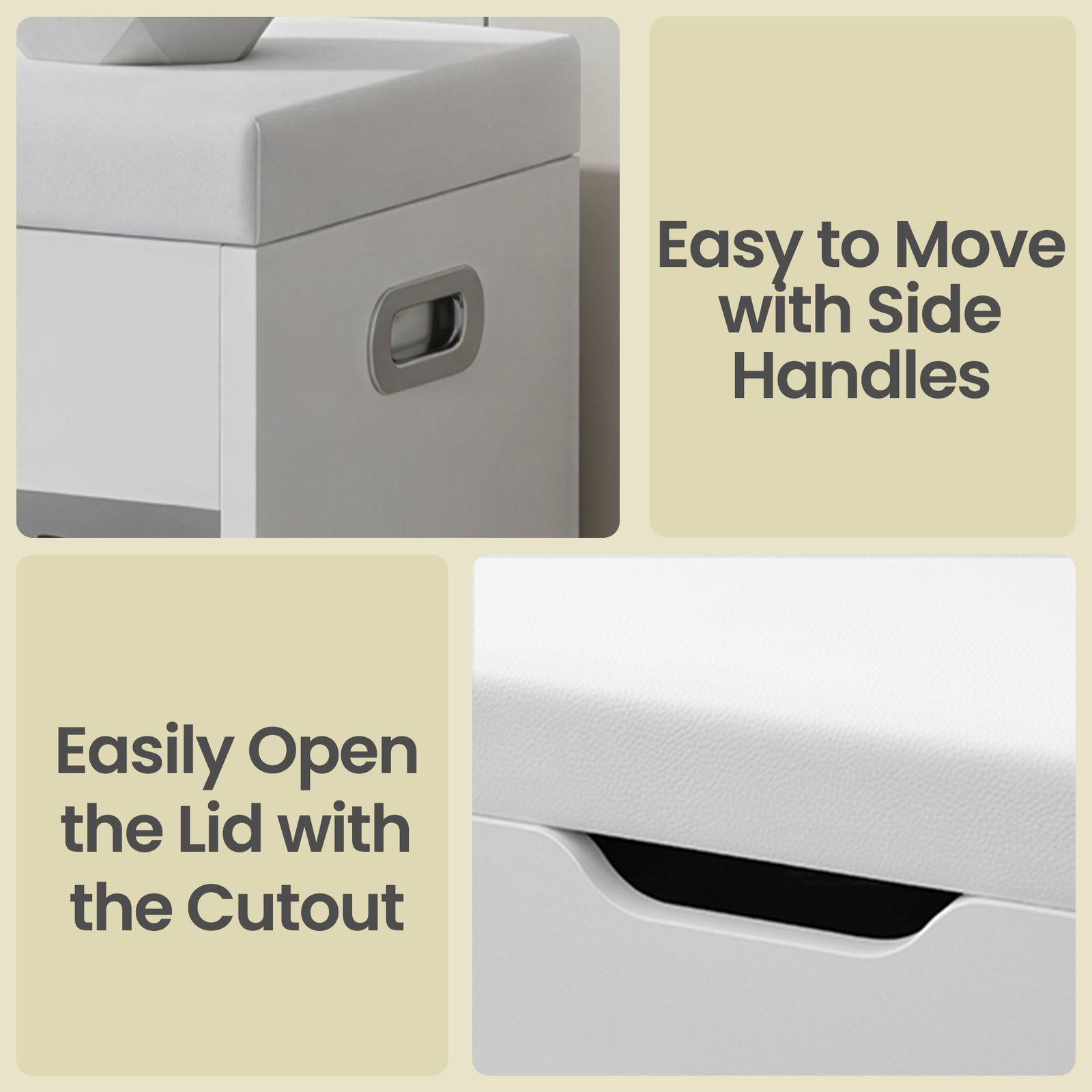 Safe and Portable: Equipped with 2 sturdy alloy hinges, this shoe storage bench prevents accidental lid closures. Easily move it between rooms with the convenient side handles