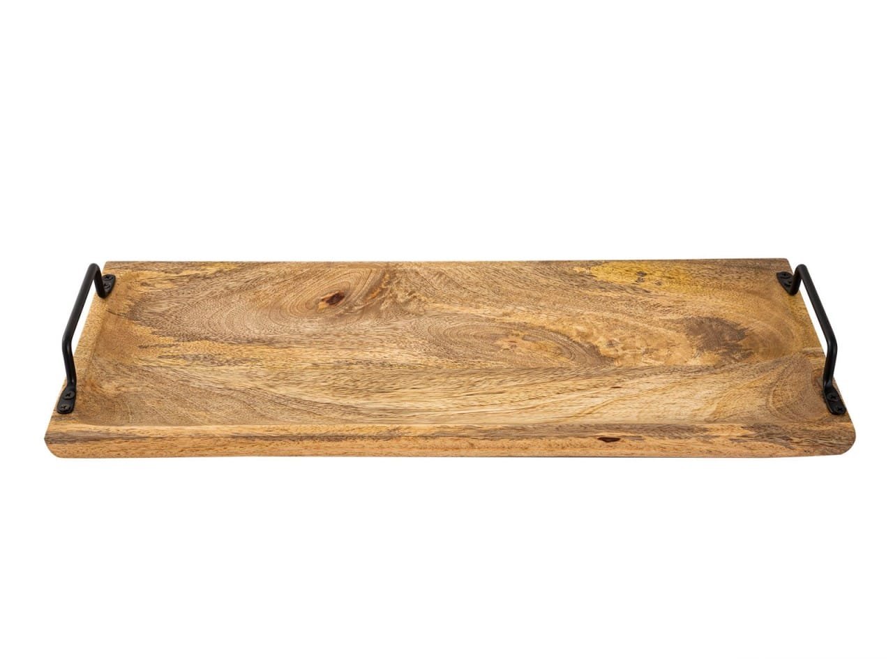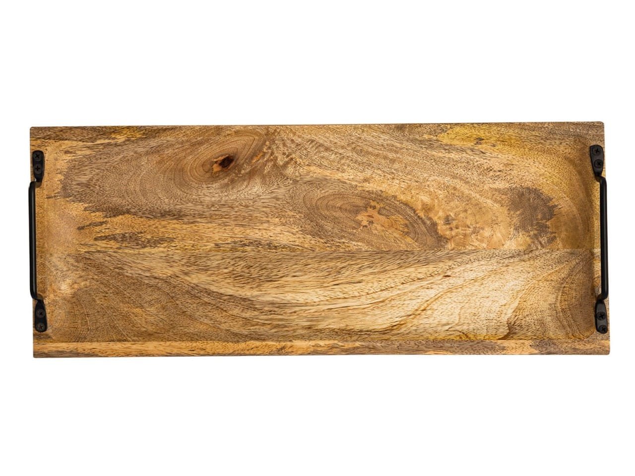 Serveringsbrickan i massivt mangoträ är ett högkvalitativt tillbehör för ditt bord eller rumsdekoration. Dess vackra trästruktur och rustika metallhandtag är iögonfallande och blir en absolut höjdpunkt i varje rum. Tack vare det högkvalitativa utförandet kommer denna praktiska och dekorativa bricka att tjäna dig väl i många år. Den omisskännliga karaktären hos massivt mangoträ gör denna rektangulära träbricka till ett riktigt blickfång i ditt rum.