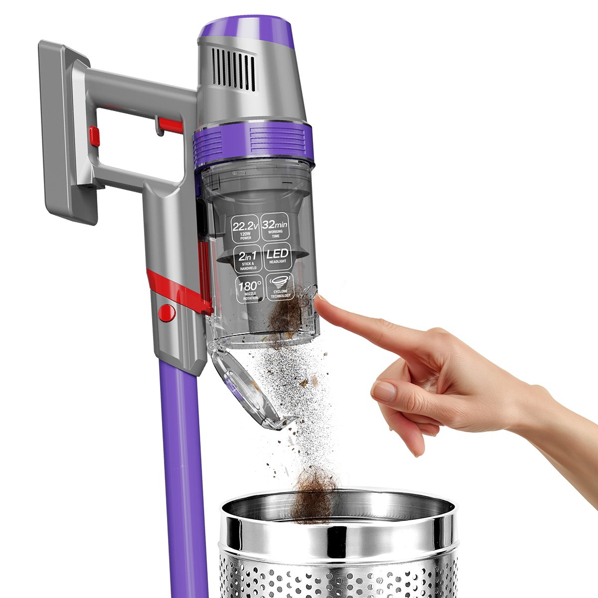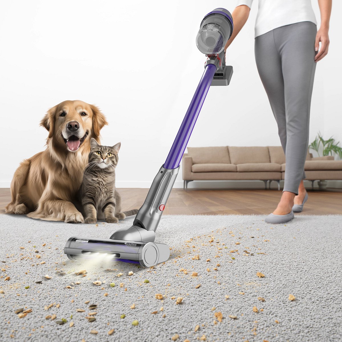 TurboTronic CF7 sladdlösa stående dammsugare erbjuder kraftfull rengöring för svåråtkomliga platser. Tack vare den lätta vikten och mångsidigheten är den lämplig för både hårda golv och mattor. Använd även handdammsugaren för extra rengöringskomfort.Kraftfull sladdlös stående dammsugare och handdammsugare i ettUpptäck vår kraftfulla 22,2V sladdlösa dammsugare. Med en 120W motor och två hastighetsinställningar rengör den effektivt både hårda och mjuka golv. Utrustad med en kapacitet på 0,9 liter, skumfilter och rolycone-cykloon för optimal sugkraft. Försedd med överhettningsskydd och ett 2200mAh litiumbatteri för upp till 32 minuters kontinuerlig användning. Lätt och miljövänlig, inklusive munstycke med roterande borste och LED-belysning, samt väggfäste för smidig förvaring. Upplev överlägsna rengöringsprestanda med vår mångsidiga och hållbara dammsugare.Kraftfull 22,2V motor för effektiv rengöringFlexibel tvåhastighetskontroll för olika golvtyperKompat design med en kapacitet på 0,9 literPålitligt 2200mAh litiumbatteri för långvarig användningPraktiskt väggmonteringssystem för platsbesparingInkluderar roterande borste med LED-belysning för noggrann rengöringViktigaste specifikationerna för TurboTronic CF7 sladdlösa stående dammsugare med handdammsugare✔ Kraftfull motor Dammsugaren är utrustad med en högkvalitativ 22,2V motor som ger stark sugkraft, även för envis smuts och damm. Detta säkerställer djupgående rengöring av mattor, mattor och hårda golv, så att ditt hem alltid förblir fräscht och rent.✔ Tvåhastighetskontroll Med möjligheten att växla mellan två hastigheter kan du anpassa rengöringskraften efter ytan du rengör. Oavsett om det gäller känsliga hårda golv eller tjocka mattor, får du alltid optimala resultat utan att orsaka skador.✔ Rymlig kapacitet Dammsugaren har en generös kapacitet på 0,9 liter, vilket gör att du kan städa längre utan avbrott för att tömma dammbehållaren. Detta sparar tid och ansträngning så att du kan lägga mer tid på andra sysslor i hemmet.✔ Pålitligt litiumbatteri Tack vare det kraftfulla 2200mAh litiumbatteriet kan du dammsuga upp till 32 minuter i sträck på lägsta hastighetsinställning. Detta ger dig tillräckligt med tid för att grundligt rengöra flera rum utan att behöva oroa dig för att ladda batteriet.✔ Praktiskt väggmonteringssystem Det smidiga väggmonteringssystemet gör det enkelt att förvara dammsugaren. Genom att montera den på väggen sparar du värdefull golv- eller skåputrymme och har alltid en laddad dammsugare till hands när du behöver den.✔ Inbyggt överhettningsskydd Dammsugaren är utrustad med ett inbyggt överhettningsskydd som skyddar motorn från skador orsakade av överhettning. Detta förlänger inte bara dammsugarens livslängd utan säkerställer också att du kan städa säkert och bekymmersfritt.✔ Munstycke med LED-belysning Det roterande munstycket är utrustat med integrerad LED-belysning, vilket gör att även de mörkaste hörnen och springorna blir väl synliga under rengöring. Detta säkerställer en grundlig rengöring utan att smuts lämnas oupptäckt.Alla specifikationer för TurboTronic CF7 sladdlösa stående dammsugare med handdammsugareFinns i 3 färger: Svart/Silver, Lila/Silver och Blå/SilverKapacitet: 0,9 literEffekt: 120 WattSpänning: 22,2VBatteri: 2200mAh litiumbatteri2 sughastigheterPåslös med cyklonteknologiRolycone-cykloonSkumfilterÖverhettningsskyddVarvtal: 41 000 rpmAnvändningstid vid låg sughastighet: 32 minuterLaddstation med väggmonteringLättviktigMiljövänligMunstycke med LED-belysningLämplig för hårda och mjuka golvMed integrerad handdammsugareMått och vikt för TurboTronic CF7 sladdlösa stående dammsugare med handdammsugareProdukt (l x b x h): 28 x 25 x 119 cmFörpackning (l x b x h): 80,5 x 75 x 17,3 cmVikt: 2,6 kg