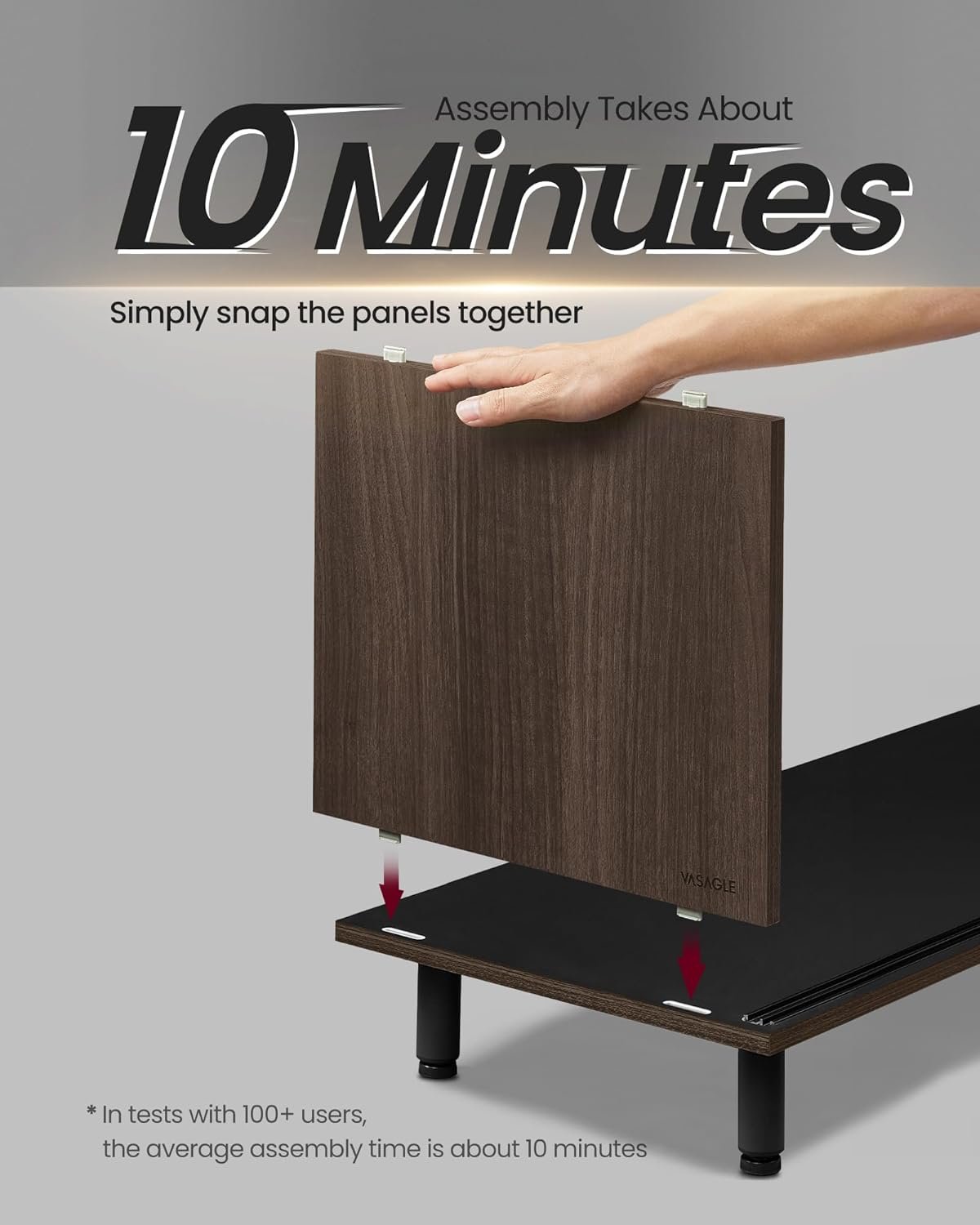 【SUPERSNABB, VERKTYGSFRIA MONTERING】Montera detta TV-bänk på bara cirka 10 minuter – inga verktyg behövs. Med inbyggda sammankopplade kontakter klickar panelerna helt enkelt ihop. Säg adjö till timmar av tråkig montering eller fumlande med många tillbehör!