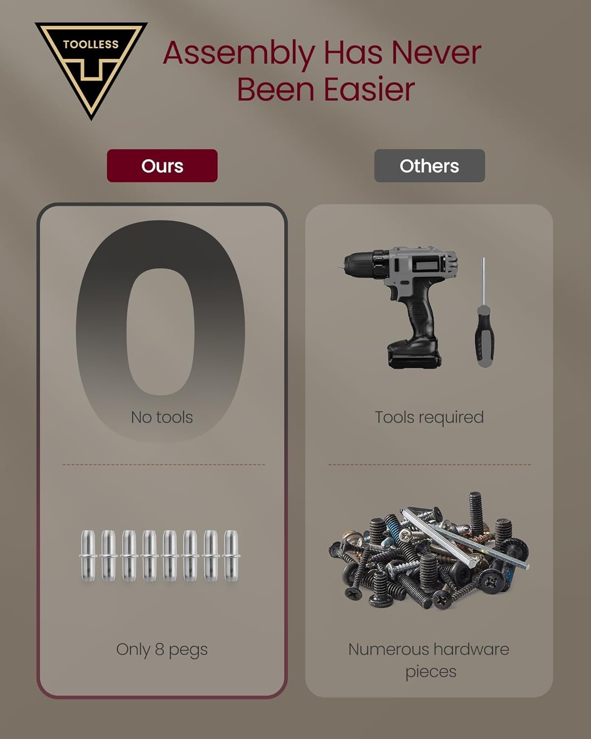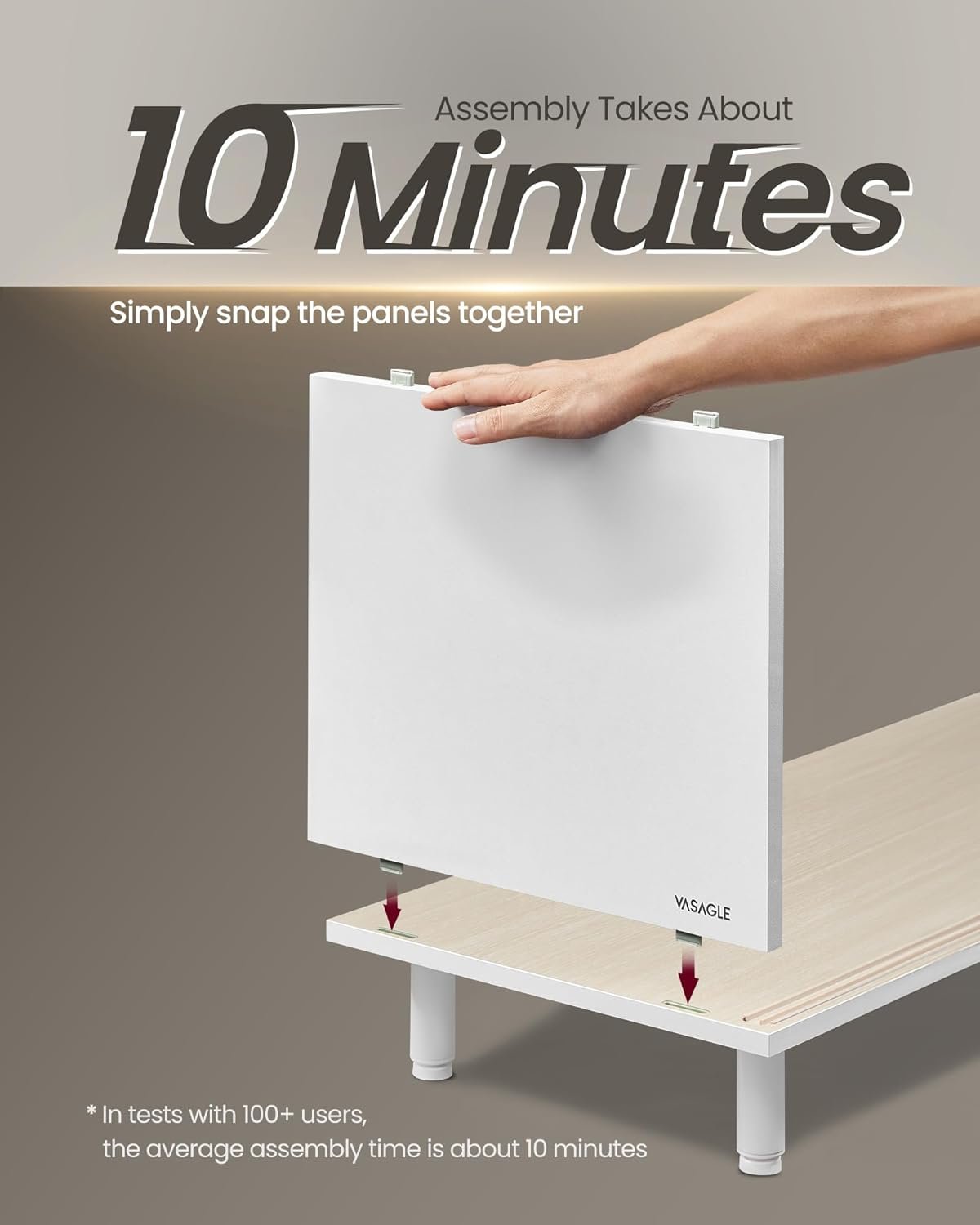 【SUPERSNABB, VERKTYGSFRIA MONTERING】Montera detta TV-bänk på bara cirka 10 minuter – inga verktyg behövs. Med inbyggda sammankopplade kontakter klickar panelerna helt enkelt ihop. Säg adjö till timmar av tråkig montering eller fumlande med många tillbehör!