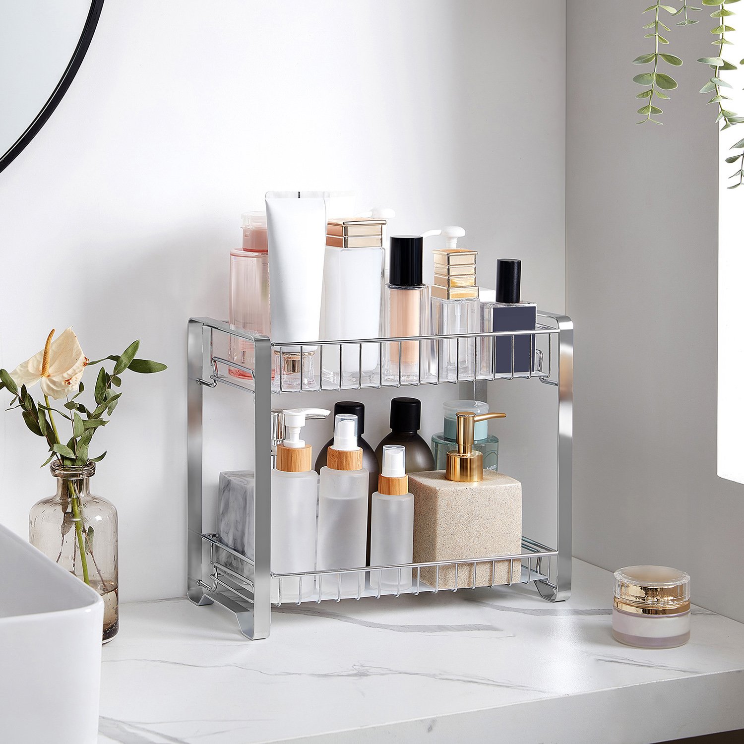 Möjligheterna är oändliga: Skapa en mini-kaffestation, gör den till en badrumsförvaring för dina toalettartiklar och smink, eller förvara dina konstmaterial i pysselområdet. Du kan se många möjligheter i denna bänkhylla med två nivåer