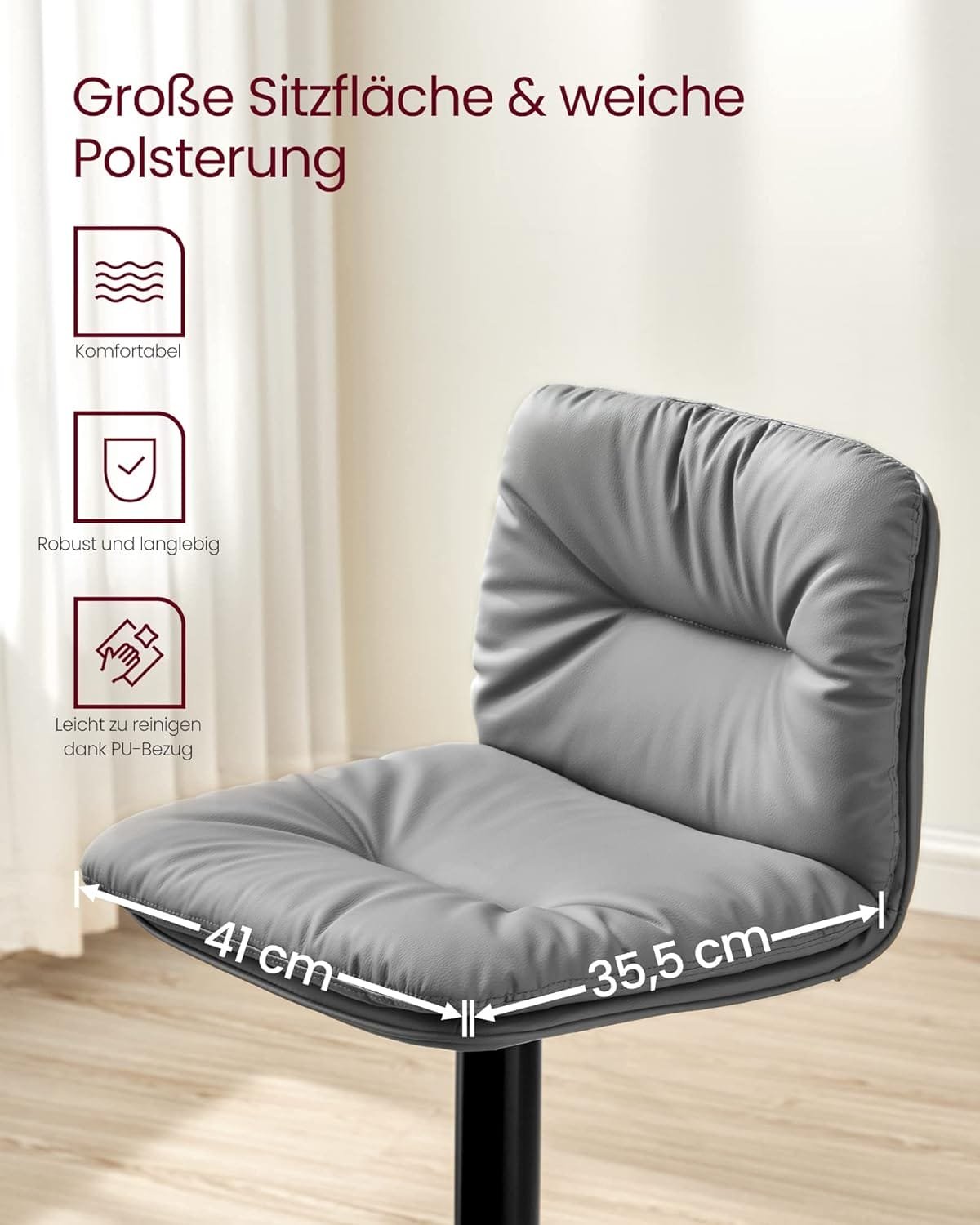 VASAGLE 2 köksstolar, höjdjusterbara, 360° vridbara köksstolar, fotstöd grå