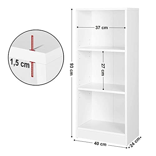 Vasagle 3-vånings bokhylla med justerbara hyllor, barnbokhylla och förvaringsenhet för studiekontor, 40 x 24 x 93 cm, vit LBC103W