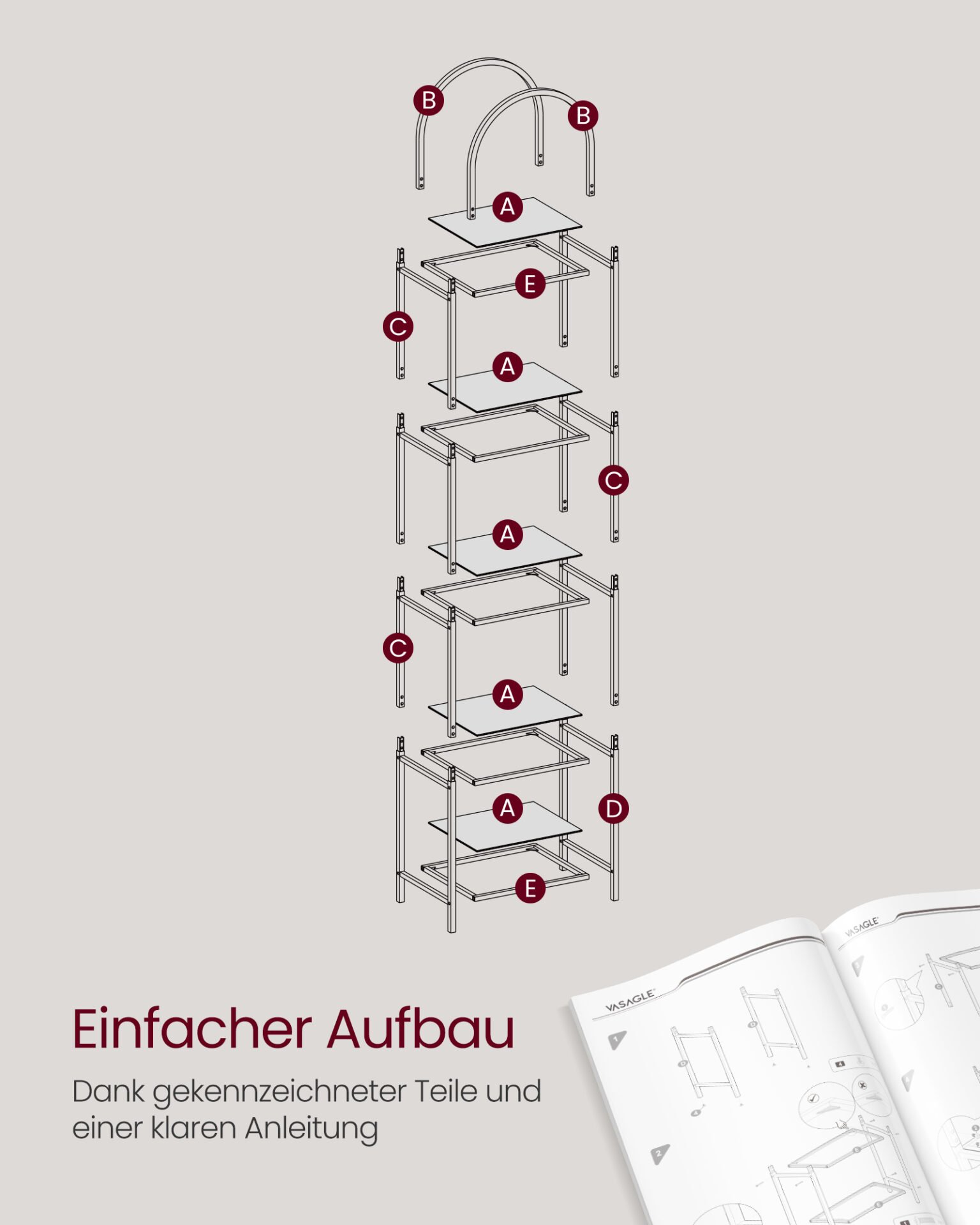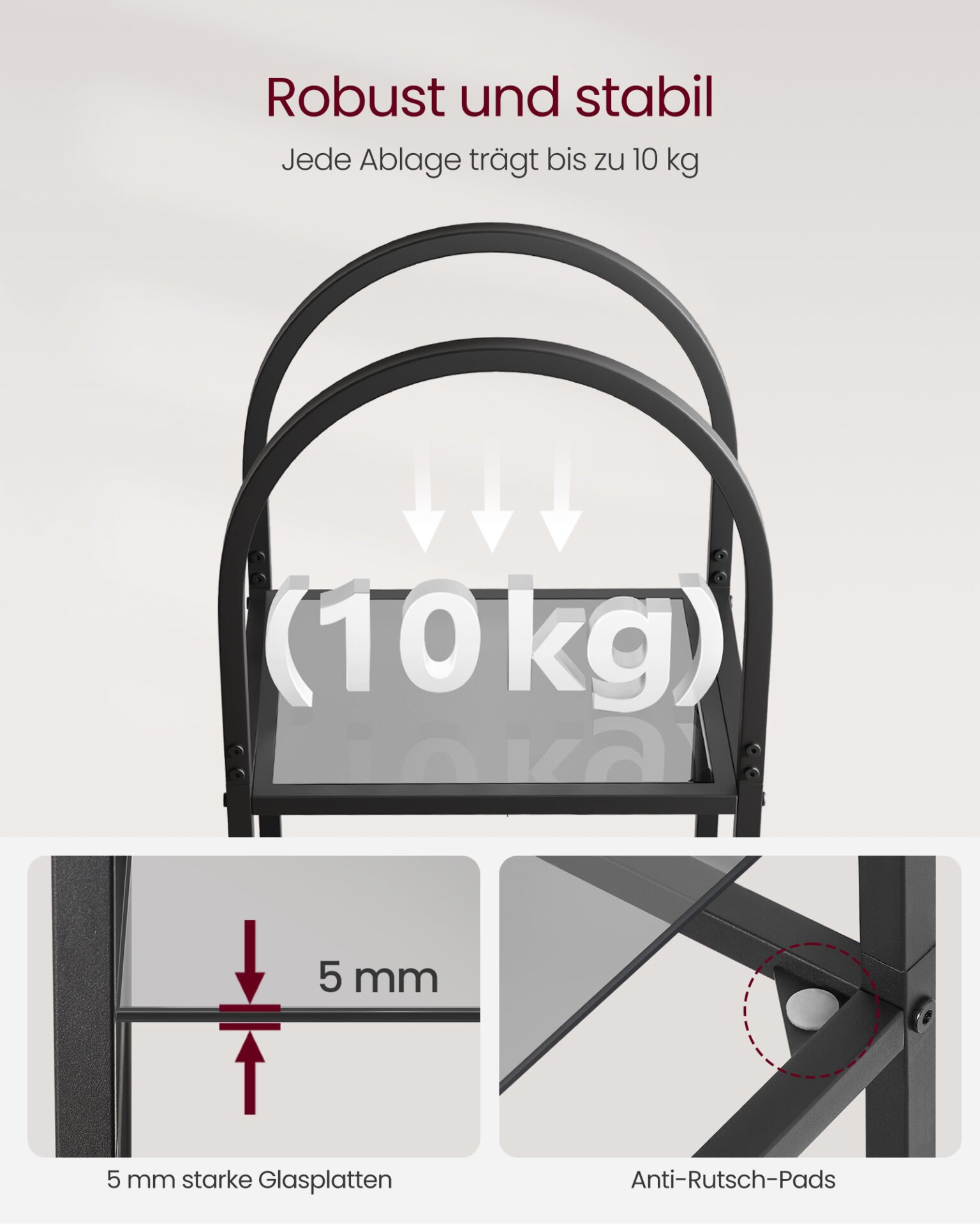 [Practical in Any Room] For decorations in the living room, documents in the study, storage baskets in the bedroom, bins in the kitchen, or even toiletries in the bathroom—this storage rack does it all due to the waterproof glass and rust-resistant steel