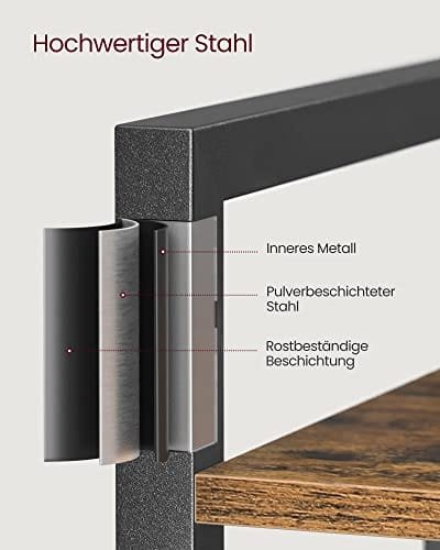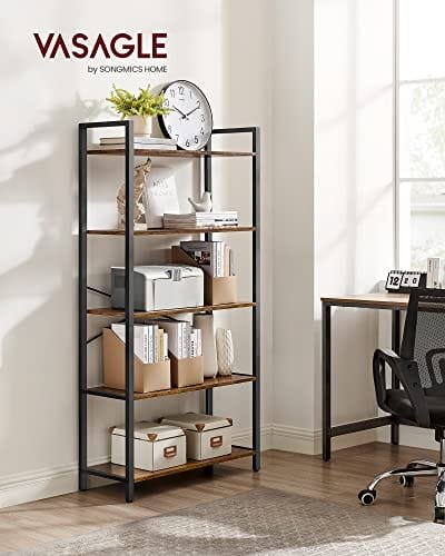 VASAGLE 5-vånings förvaringsställ, bokhylla med stålram, rustikt brunt och svart