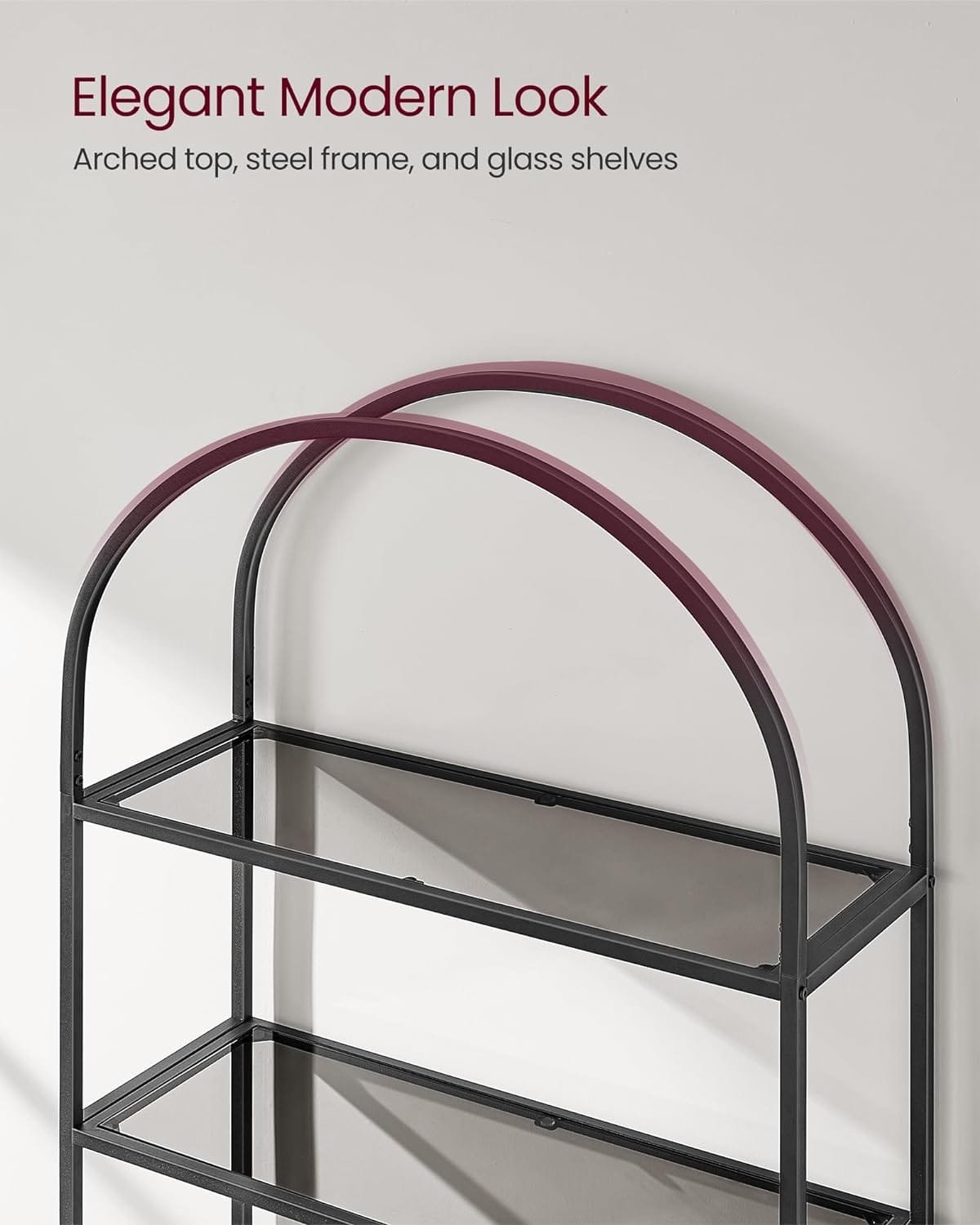 VASAGLE 5-våningshylla, hyllenhet i härdat glas, välvd design, svart och grå