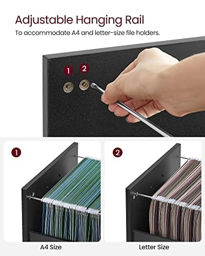 Bekväm låda: En hängmapp i den nedre lådan på detta arkivskåp är justerbar och kan förses med pärmar i A4- eller bokstorlek, vilket håller dina filer organiserade och lättillgängliga.