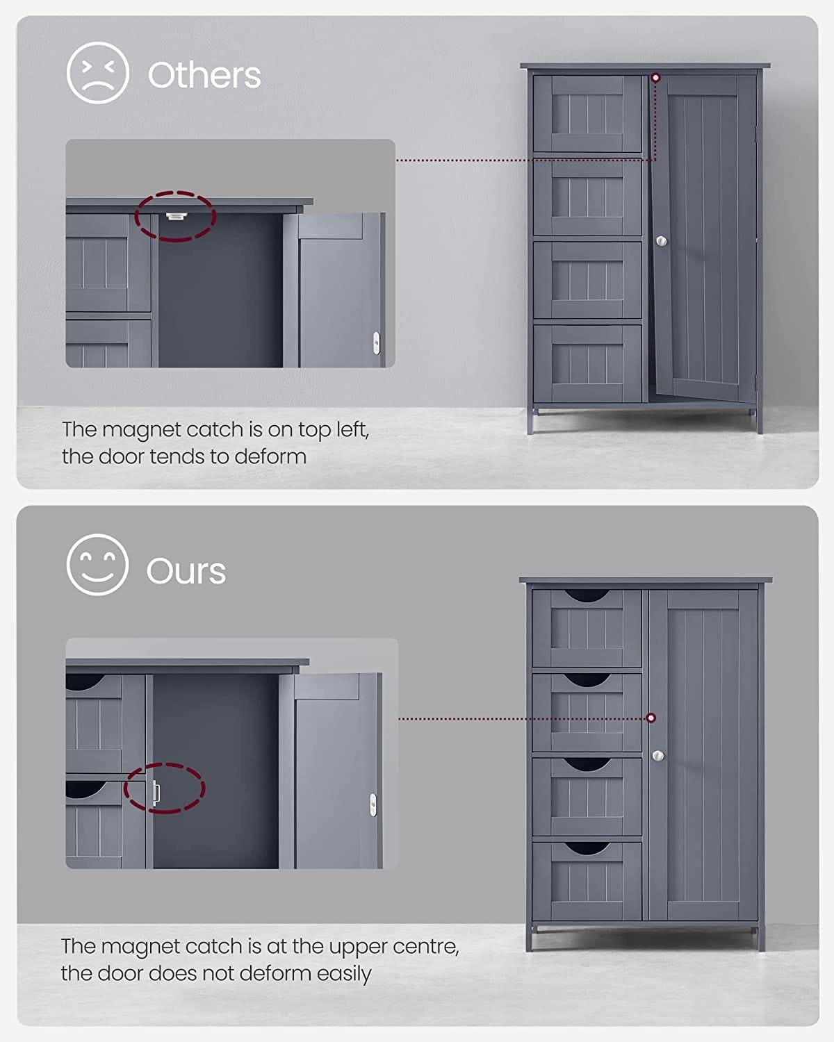 Vasagle Badrumsgolv förvaringsskåp, badrumsförvaringsenhet med 4 lådor, grå