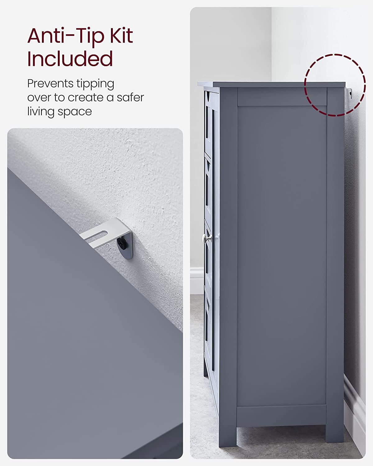 [Robust och säker] gjord av robust MDF, detta badrumsförvaringsskåp är robust och stabilt; Anti-Tip-kit på baksidan av detta förvaringsskåp bidrar till den totala stabiliteten och säkerheten
