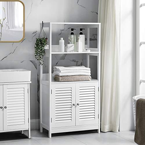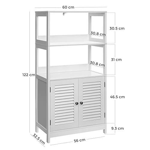 VASAGLE badrumsgolvskåp, högt förvaringsskåp, fristående bokhylla, matt vit