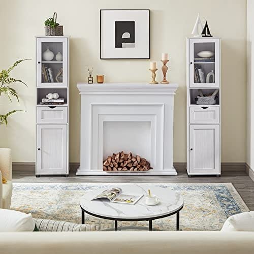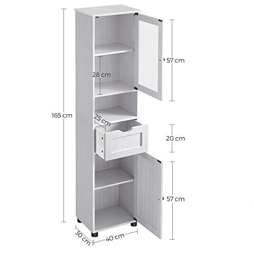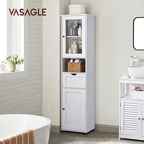 VASAGLE badrumsskåp, kolumnförvaringsenhet, dörrskåp, lådor, trävit