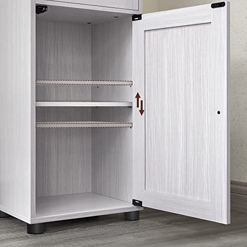 Flera förvaring – Detta skåp erbjuder dig ett öppet fack för föremål du ofta använder, en låda för handdukar och höjdjusterbara hyllor bakom dörrarna för att lagra saker i olika storlekar!