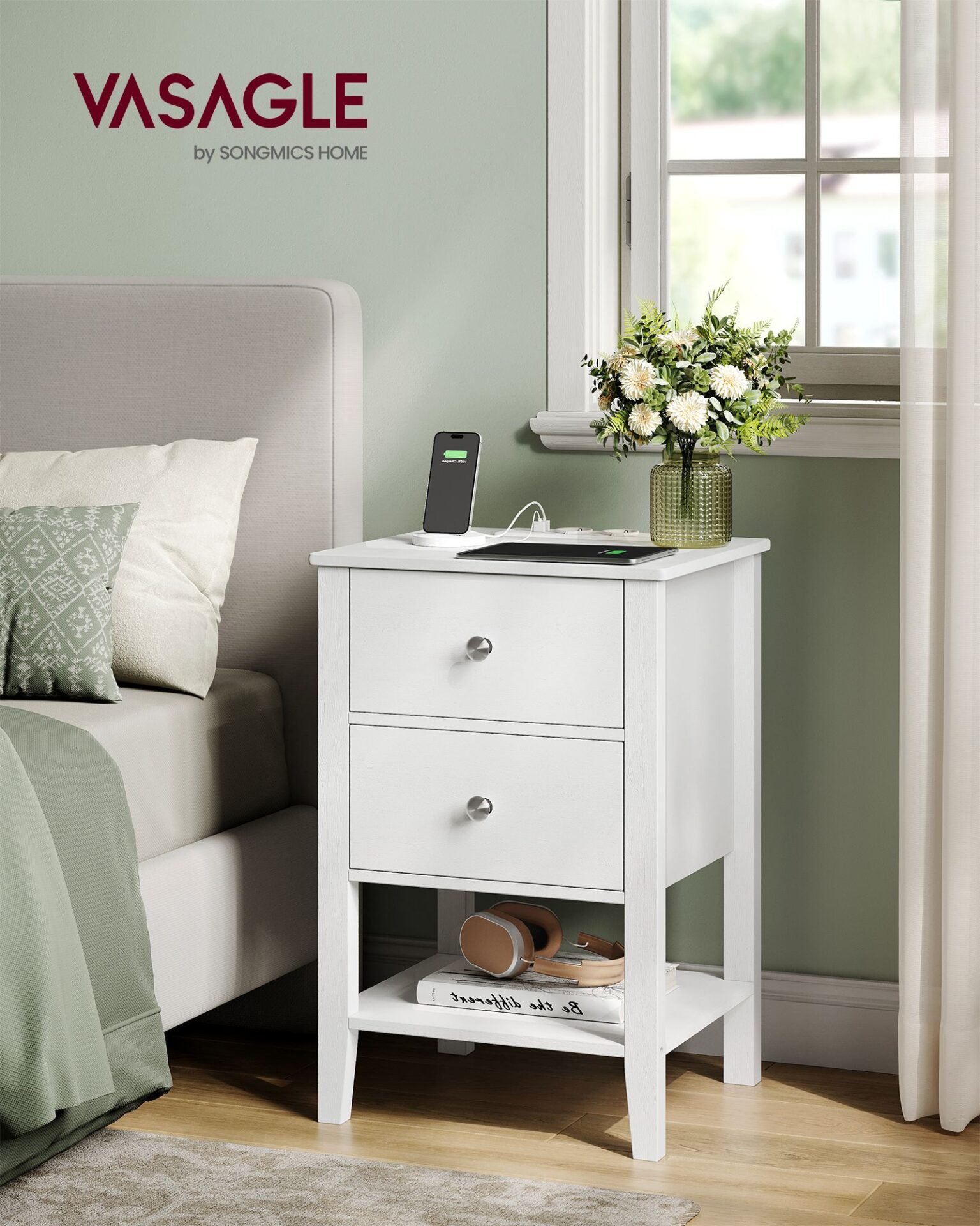 [Charging made easy] With this side table with 2 AC outlets and 2 USB-A ports, you can conveniently charge multiple devices in bed or on the sofa. No more problems with inaccessible sockets or knotted cables