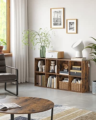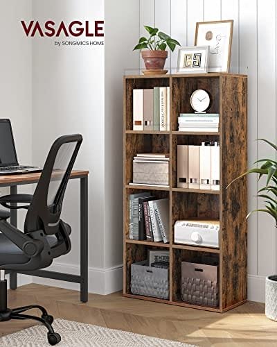 Vasagle bokhylla bokhylla 8 fack stående hylla kontorshylla fristående dekoration för kontor vardagsrum sovrum barnrum vintage brun LBC024T01