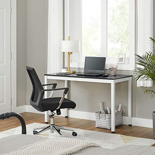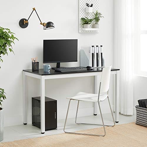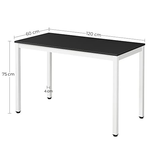 Vasagle datorbord, Skrivbord med stort skrivbord, Stabilt kontorsbord, Modernt matbord, Hemmakontor, Enkel montering, 120 x 60 x 76 cm (LXWXH), Svart, Vit LWD64B
