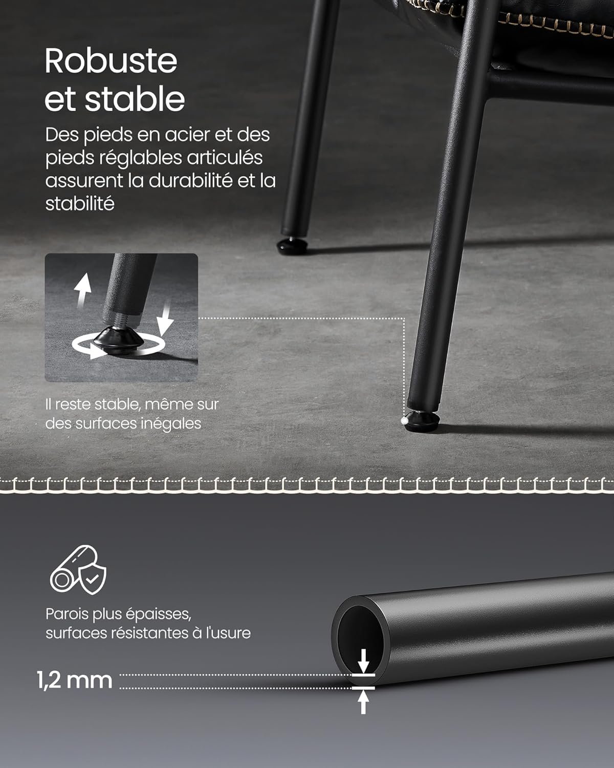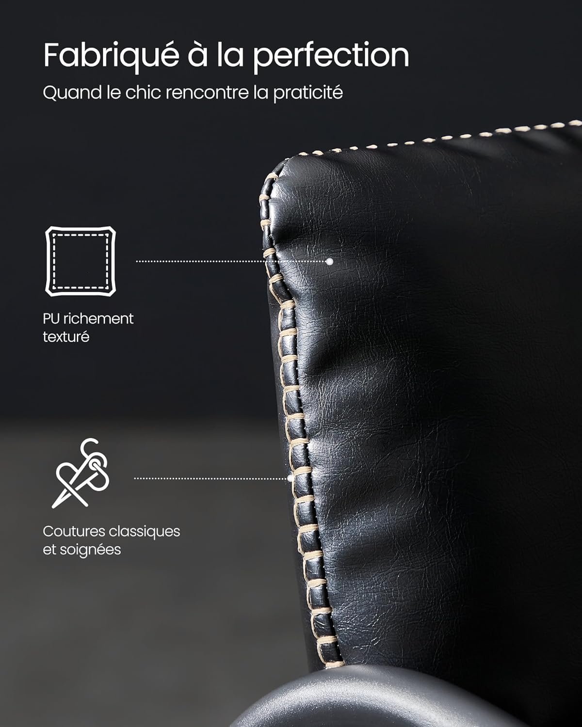 [Style speaks volumes] This accent chair from the VASAGLE EKHO collection beautifully combines PU and refined stitching. The sleek steel frame complements its striking lines, evoking the minimalist philosophy of mid-century modern style.