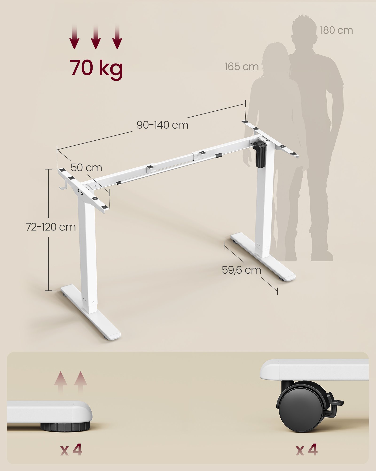 Stable and quiet: The high-quality steel frame and motor ensure smooth height adjustment, even with a load of 70 kg; the noise level is less than 48 dB in operation.