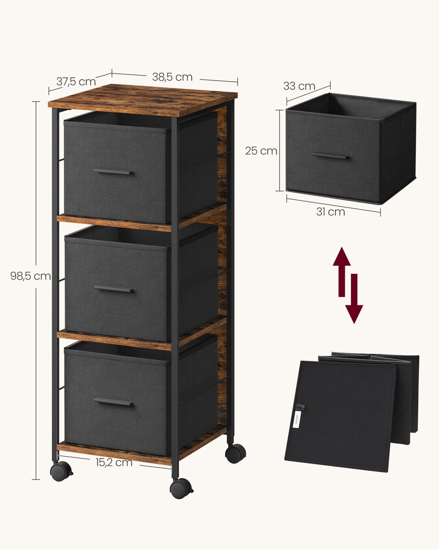 VASAGLE Filing Cabinet with 3 Drawers, Printer Stander, for A4, Letter-Size Files, Hanging File Folders, File Storage Box, Home Office, Rustic Brown and Ink Black OFC058B01