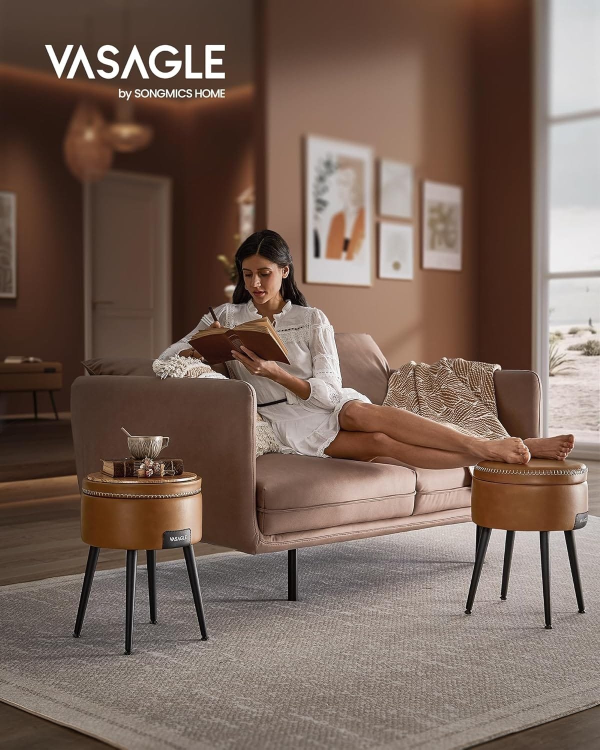 [Förbättra ditt utrymme] Med sin PU-klädsel, raffinerade sömmar och avsmalnande ben är pallen VASAGLE EKHO kollektion en påtaglig hyllning till den hantverksmässiga andan och lyfter ditt hem till en annan nivå.