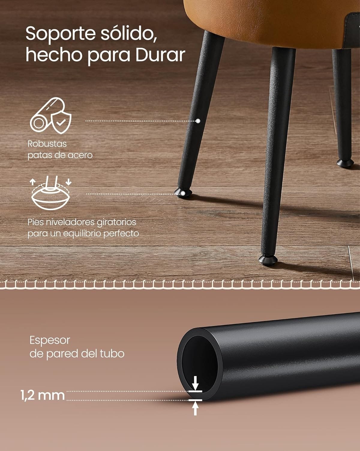 [Gjord för att hålla] Denna förvaringspall är byggd med 4 robusta stålben med en 1,2 mm tjock vägg. Komplett med ledade ben, stödjer den säkert upp till 150 kg, för en lång livslängd.