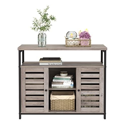 Plats för alla: Med en rymlig bordsskiva, 1 stor öppen hylla, 2 öppna fack och 2 justerbara hyllor gömda bakom 2 klassiska gallerdörrar, finns det gott om förvaringsutrymme i detta rymliga golvskåp för dekorationer, köksredskap med mera